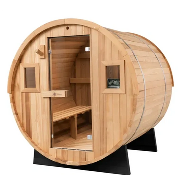 Spacious enough for six, this sauna offers the perfect start to your day, promoting mental clarity and relaxation. Designed for backyard bliss, it brings the authentic sauna experience right to your home and in a beautiful barrel design. Feel the stress melt away as you enjoy the benefits of heat therapy in this stunning addition to any outdoor space. Make it yours today and embrace a new level of wellness.